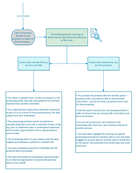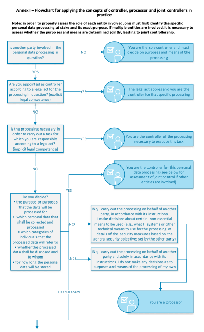 The EDPB provided a flowchart “for applying the concepts of controller, processor and joint controllers in practice:”
