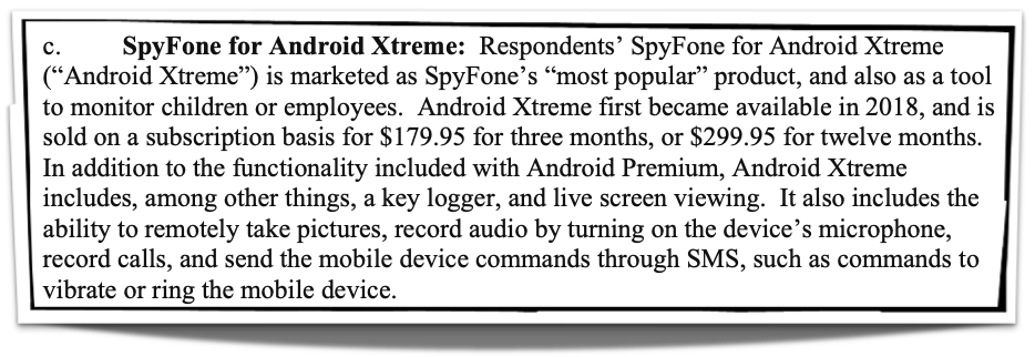 The FTC took aim at Support King/SpyFone’s claims that its product was for employers and parents:
